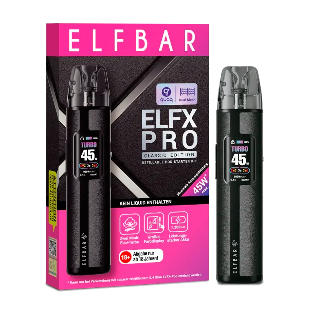 Der ELFBAR ELFX PRO ist genau das Richtige für dich, wenn du beim Vapen auf starke Performance, durchdachte Features und ein elegantes Design stehst. Dieses Pod-System vereint moderne Technik mit elegantem Design – und bringt alles mit, was du für dein nächstes Level beim Dampfen brauchst.